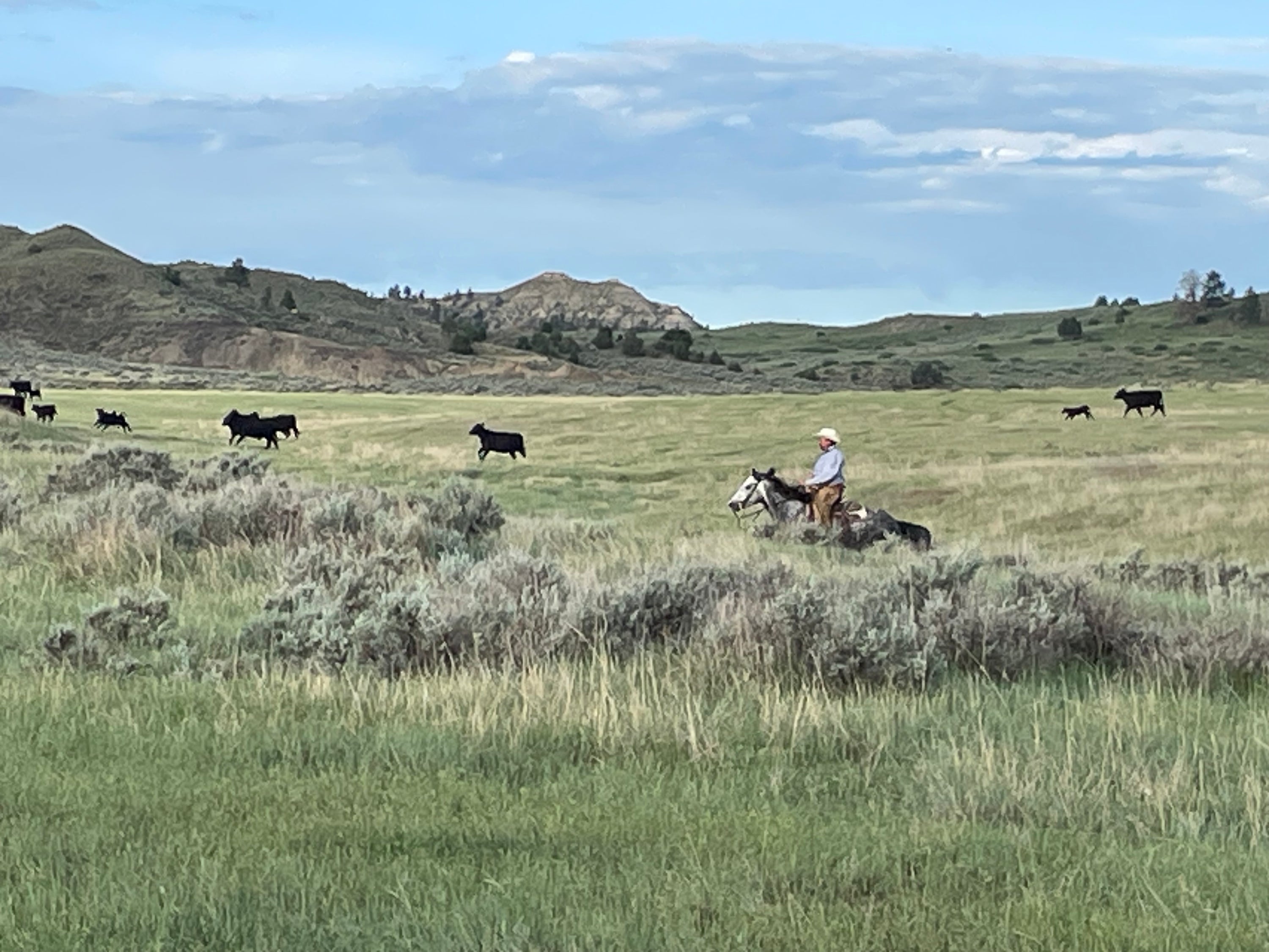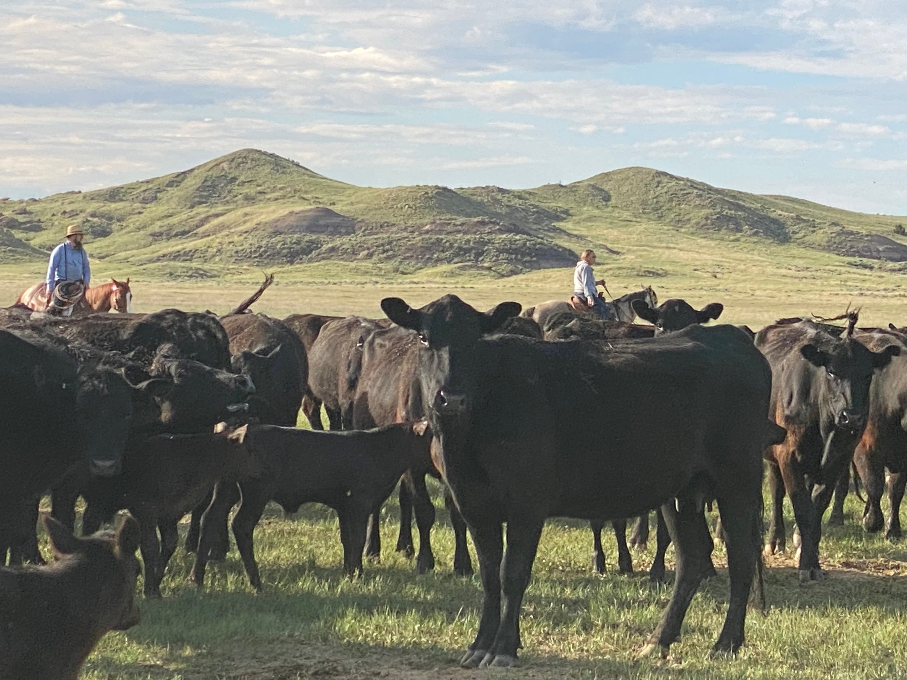 Our free to roam cattle are raised on the open range of eastern Montana where the skies are blue and the air is clean. Our cattle do not receive supplemental hormones at any time. We handle our cattle as little as possible, reducing stress and maximizing gain. Natural grass grazed from the prairie is at the heart of our beef quality. We then finish our cattle in our own feedlot right on the ranch. We feed alfalfa and corn primarily grown on our land along the Tongue River. So, from start to finish, we know our cattle are getting premium, natural feed.